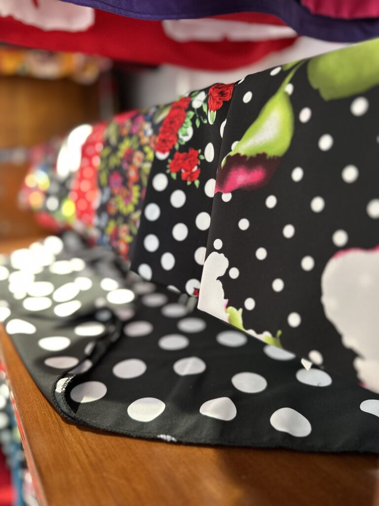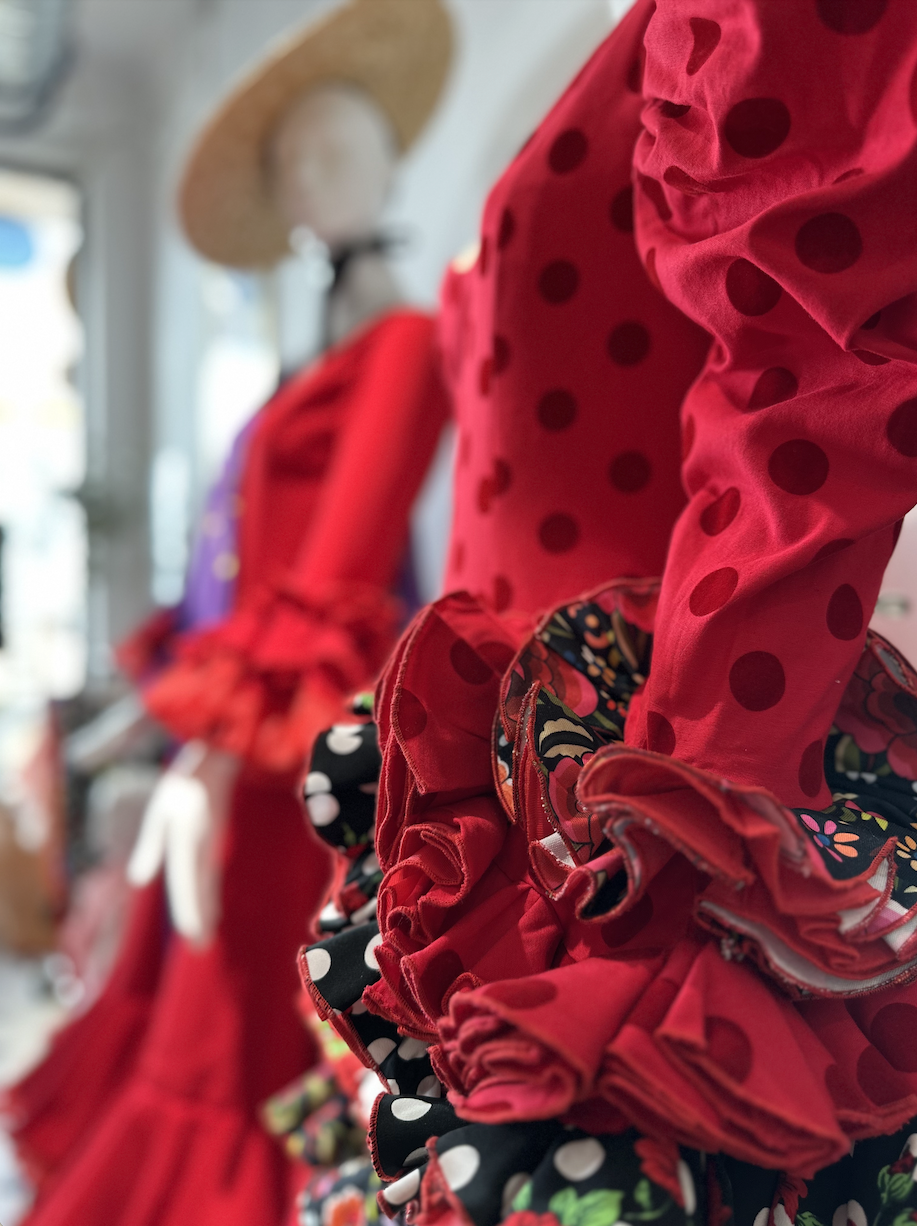 Nuestra tienda es mucho más que un simple lugar de venta: es un homenaje vivo a la cultura flamenca. Aquí encontrarás una cuidada selección de vestidos, faldas y accesorios flamencos, todos diseñados y confeccionados a mano con esmero. También descubrirás una gran variedad de recuerdos que representan a Sevilla y Andalucía, pensados para seguir haciéndote soñar durante muchos años.