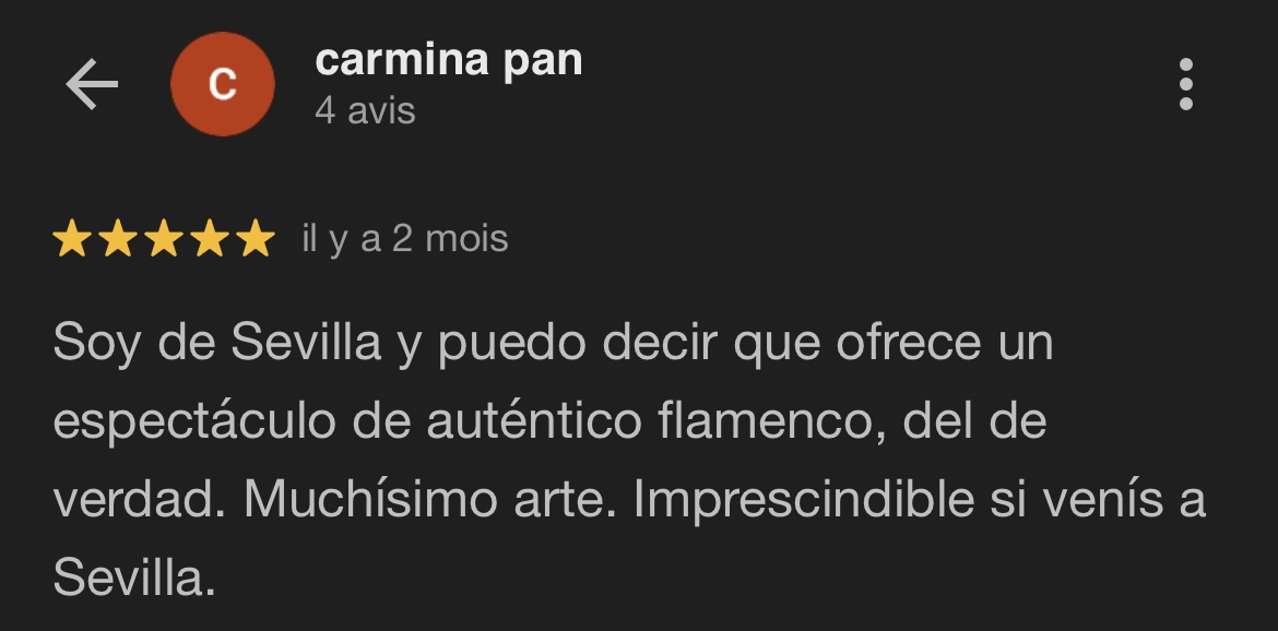 Precio especial residente de Sevilla : 20,00€ / pers (Enseñar su DNI)