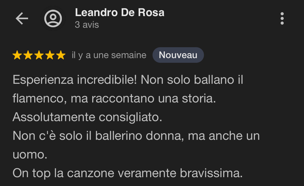 Te ofrecemos clases inmersivas de flamenco de una hora, accesibles para todos. Tanto si eres principiante como si ya tienes experiencia, nuestras clases te brindan un momento único de intercambio, emoción y descubrimiento, en un ambiente cálido y auténtico, en el corazón mismo de nuestro tablao.