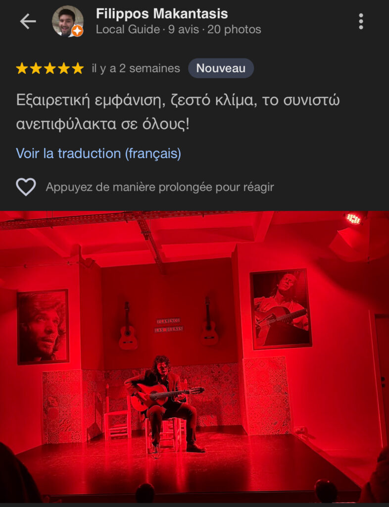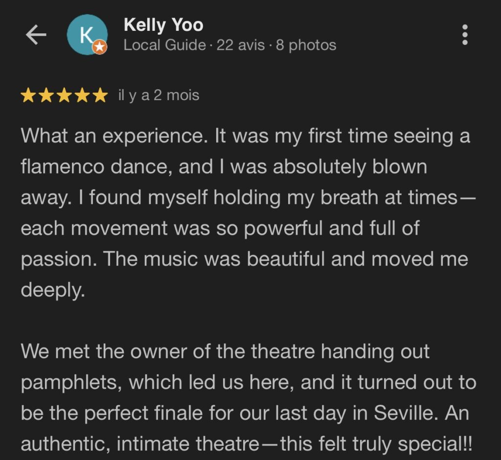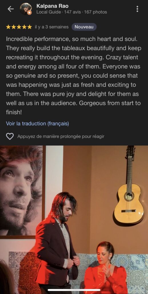 Luces tenues, aromas de Andalucía, cercanía con los artistas: aquí, cada espectáculo es una inmersión total en el duende flamenco.